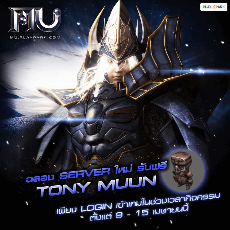เพื่อเป็นการต้อนรับเซิร์ฟเวร์ใหม่ “Thailand 2” มาพร้อมกับกิจกรรมกด LIKE Facebook Page PlayPark MU TH ให้ถึงตามเป้ารับของรางวัลมากมาย พิเศษ! ลุ้นรับบัตรกำนัล Starbuck มูลค่า 200 บาท 5 รางวัลทุกสัปดาห์ ร่วมสนุกได้ถึงวันที่ 10 พฤษภาคมนี้เท่านั้น และกิจกรรม Welcome to Thailand 2 เพียงล็อกอินเข้าเกมเซิร์ฟเวอร์ใดก็ได้ 9 – 15 เมษายนนี้ รับฟรี Muun - Tony Lv. 1 ถาวรไปเลย ปิดท้ายด้วยกิจกรรม RAF to the new world แท็กเพื่อนมาเล่นลุ้นรับทันที พรีเมี่ยมไอเทมเซ็ตและปีกคลาส 2 เริ่มวันที่ 9 – 15 เมษายนนี้ ดูรายละเอียดกิจกรรมทั้งหมดได้ที่ https://bit.ly/2yDZhzr