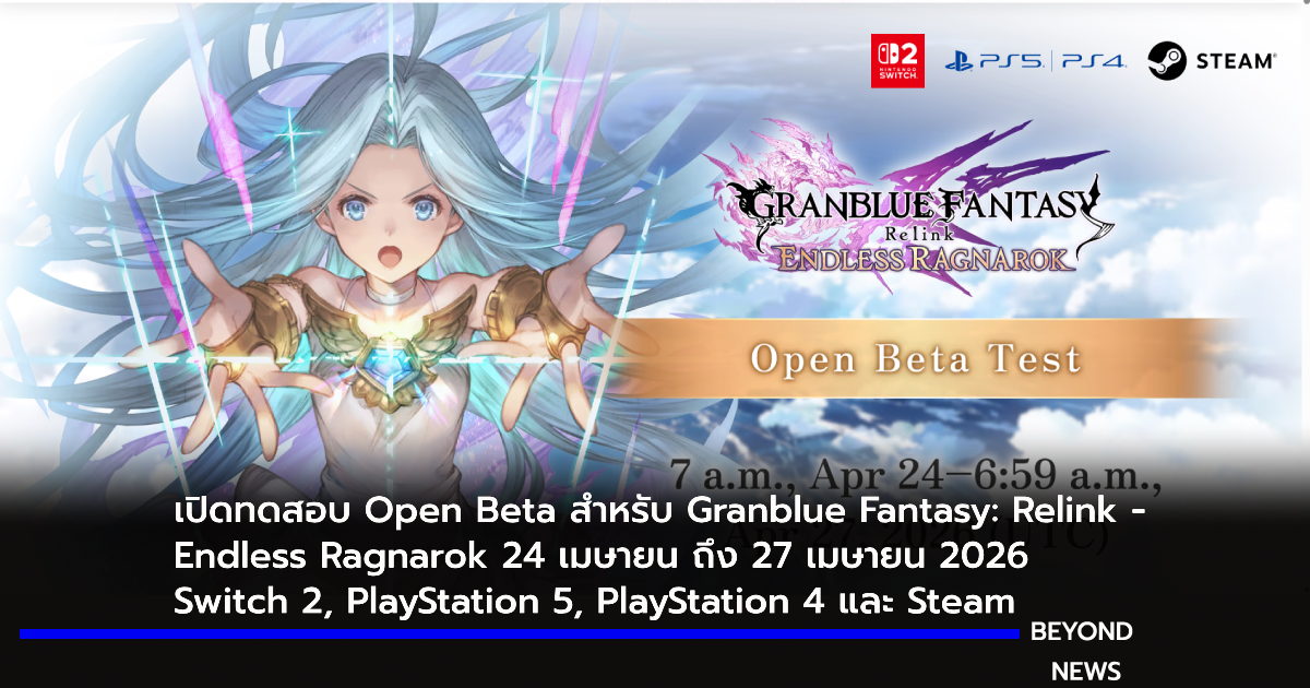 Cygames (สำนักงานใหญ่: ชิบูย่า, โตเกียว) ประกาศเปิดทดสอบ Open Beta สำหรับเกม Action RPG ภาคใหม่ Granblue Fantasy: Relink - Endless Ragnarok (Endless Ragnarok) โดยมีรายละเอียดดังนี้:..