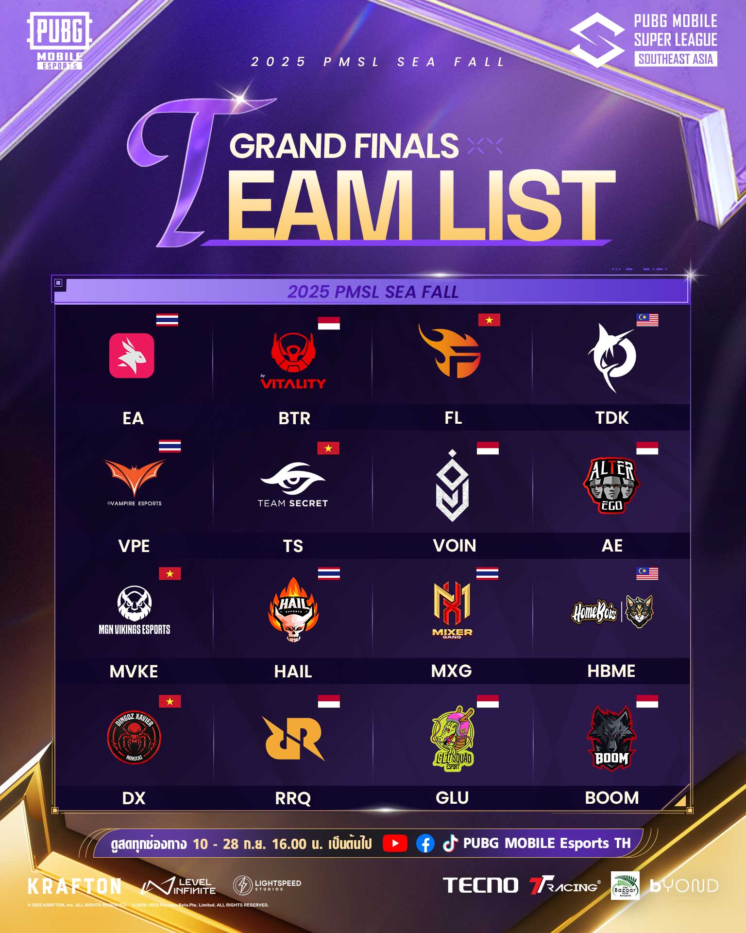 เตรียมตัวให้พร้อมสำหรับการแข่งขันที่ยิ่งใหญ่ที่สุดของภูมิภาคเอเชียตะวันออกเฉียงใต้ในเกม PUBG MOBILE กับรอบ Grand Finals ของ PUBG MOBILE Super League Southeast Asia Fall 2025 ที่จะจัดขึ้นในวันที่ 26-28 กันยายนนี้ ณ ชั้น 7 เซ็นทรัลเวิลด์ Pulse กรุงเทพมหานคร