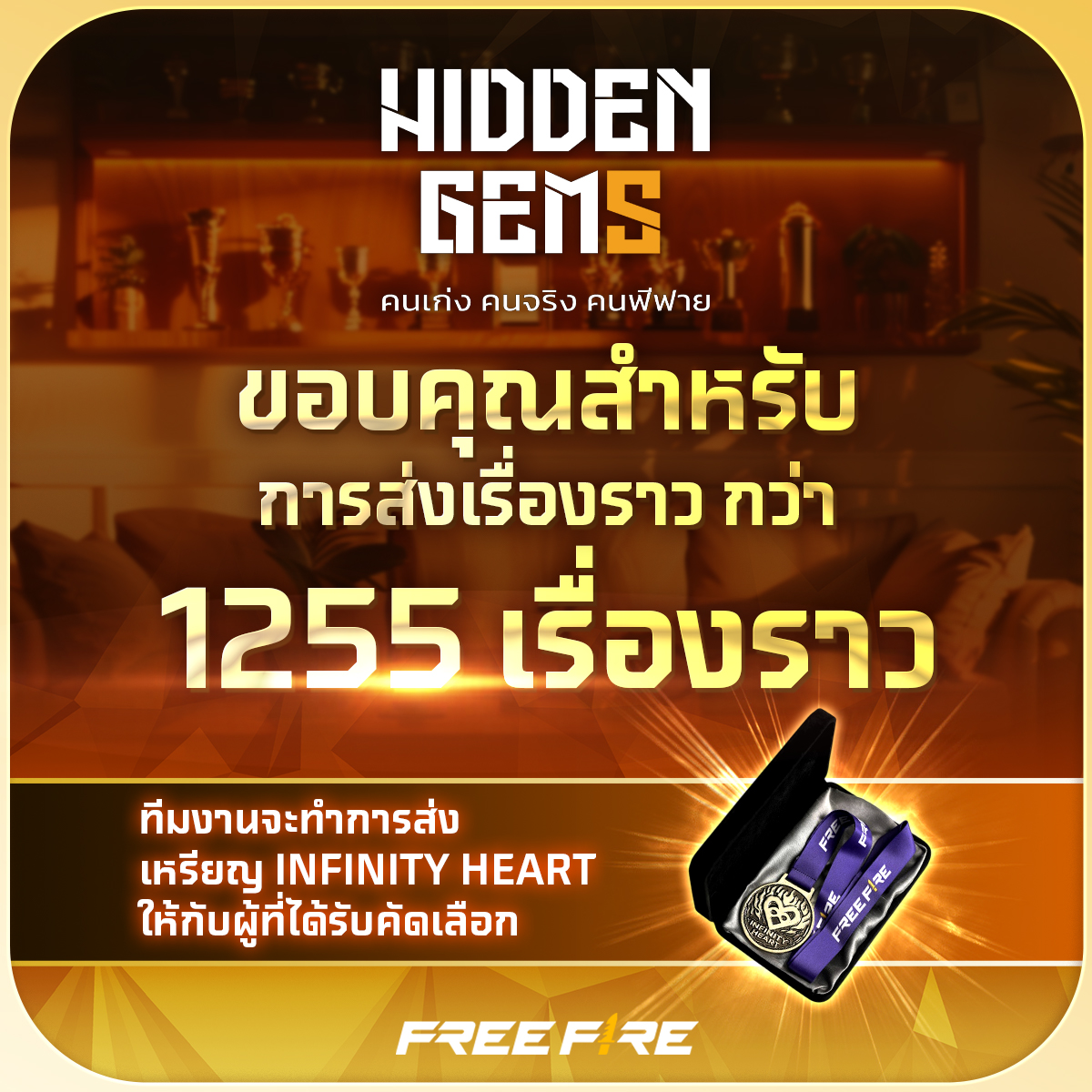 แคมเปญ “Hidden Gems: คนเก่ง คนจริง คนฟีฟาย”  ได้รับการตอบรับอย่างล้นหลามจากชุมชนผู้เล่น Free Fire ทั่วประเทศที่นำเสนอเรื่องราวเพื่อรับเหรียญ “Free Fire Infinity Heart” อันทรงเกียรติ โดยในจำนวนนี้มีเรื่องราวน่าประทับใจในหมวดต่าง ๆ ดังนี้